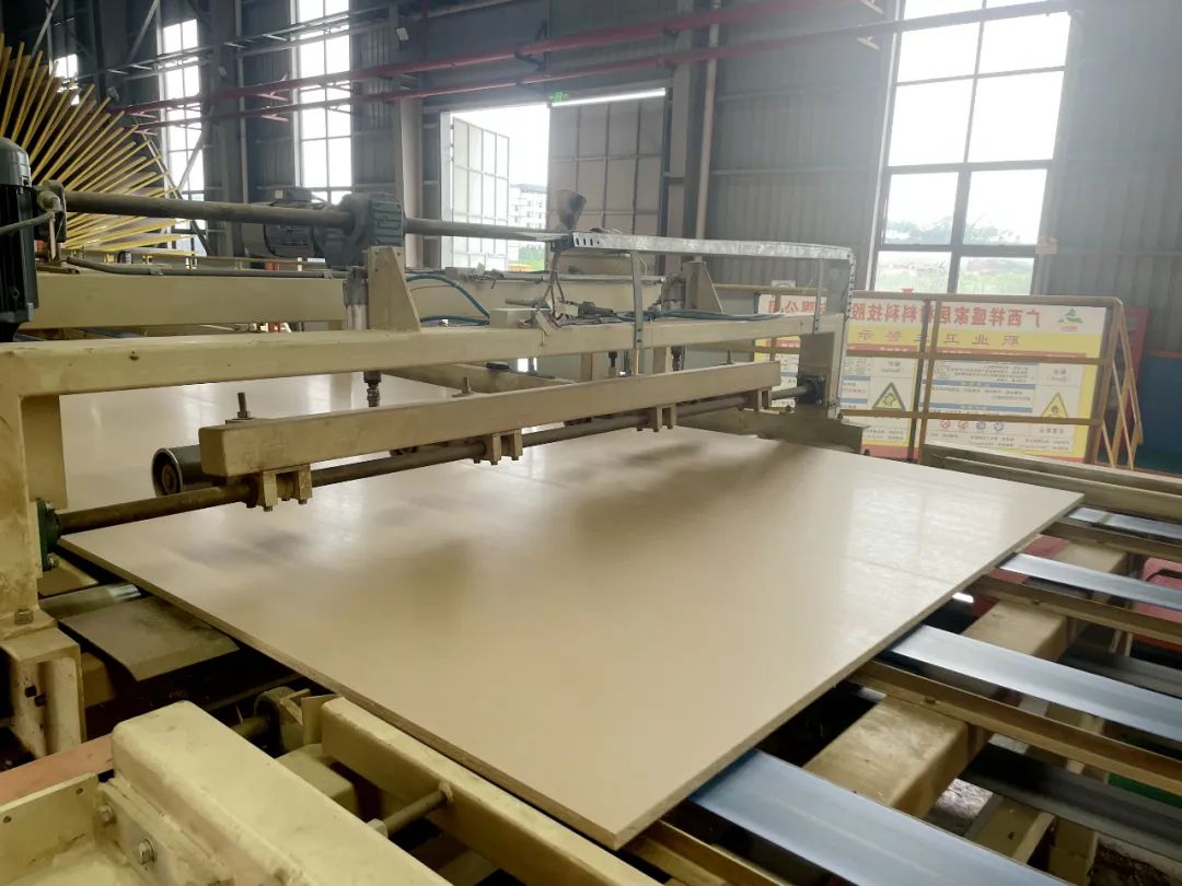 在广西祥盛家居材料科技股份有限公司(以下简称广西祥盛)年产30万立方米定向结构刨花板(OSB)厂房里,一台台大型生产设备马力全开。随着生产设备的不停运转,一张张刨花板从压机里缓缓而出。