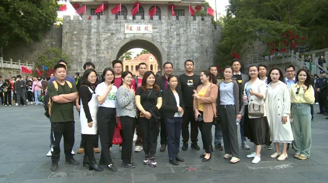上午9点,在友谊关联检大楼,记者看到游客们已经排起了长队,他们有的在导游的引导下排队准备出境,有的利用等待时间游览友谊关关楼,与亲朋好友拍照留念,凭有效的护照、旅游通行证、边民通行证就可以一步跨两国,领略中越民俗文化。