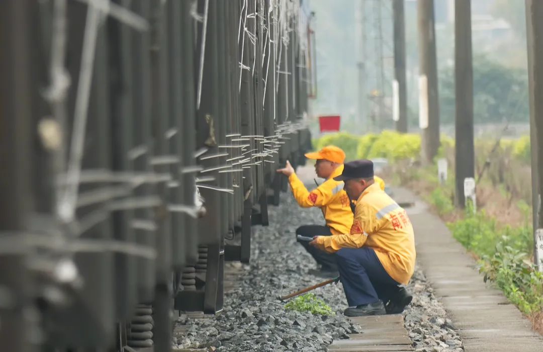 来到凭祥火车站,满载着980余吨钢材的24509次货物列车旁,两位身穿明黄色工服的列车检修员正拿着工具,全神贯注地对列车进行最后的检查,经过检修员确保无误之后,列车才缓缓驶离站台,两小时后将到达越南同登站。春节期间,守护“国门车站”的铁路工作者,各司其职,紧密协作,坚守在岗位一线,和钟晓洪一样在铁路工作了24年的李军告诉记者,只要列车还在轨道上运行,他们的工作就不会停止,会随着列车不断向前走。