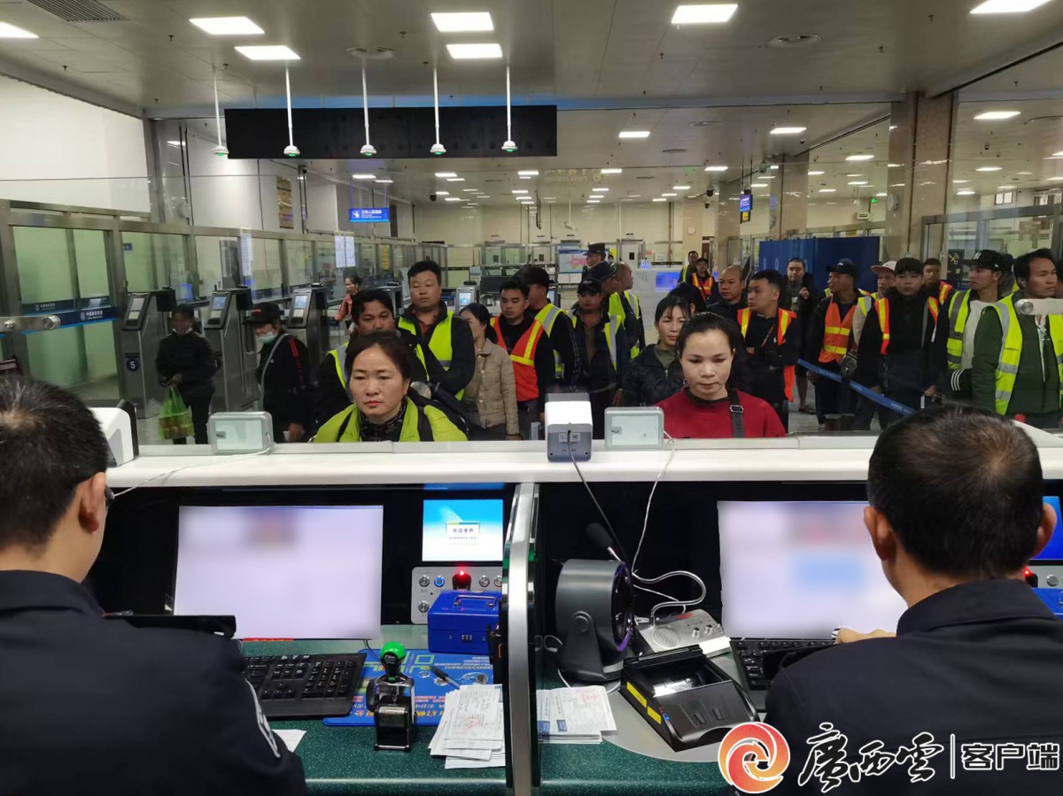 在短途跨境游等政策带动下,友谊关口岸浦寨附属通道旅检大厅客流密集。