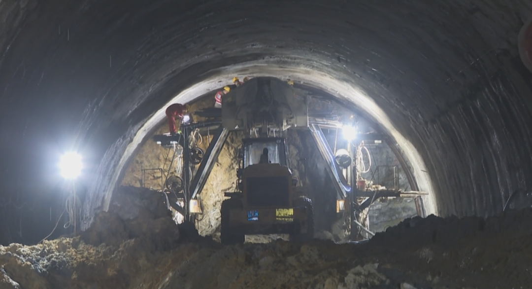 9月15日,在中越智慧口岸(浦寨—新清通道)项目建设现场,工人们都集中在隧道里进行开挖作业,隧道中粉尘多、噪音大、湿度大,但是大家依旧有条不紊的忙着手上的活。