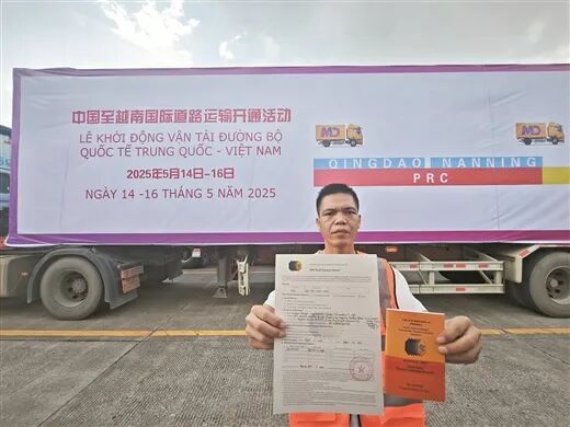 崇左片区联合友谊关口岸国际道路运输管理处推动实施中越跨境货物直达运输新模式,开通8条经友谊关至越南重点地区的直达运输线路,形成“区域联通、物流便捷”跨境交通网。2025年5月14日,中方货运车辆持CBTA(大湄公河次区域便利货物及人员跨境运输协定)证件首次入境越南河内,实现“一车到底”直达运输,提升了运输效率,降低了跨境物流成本。
