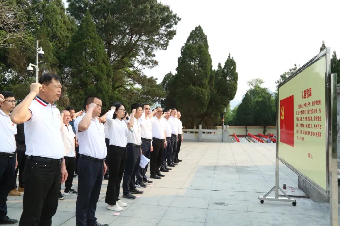 “我志愿加入中国共产党......永不叛党。”党员们高举右拳,重温入党誓词,铿锵的誓词划破清晨的寂静,表达了继承先烈遗志、为共产主义奋斗终身的决心。宣誓结束后,大家依次向烈士敬献鲜花,缓步绕行并瞻仰革命烈士纪念碑。