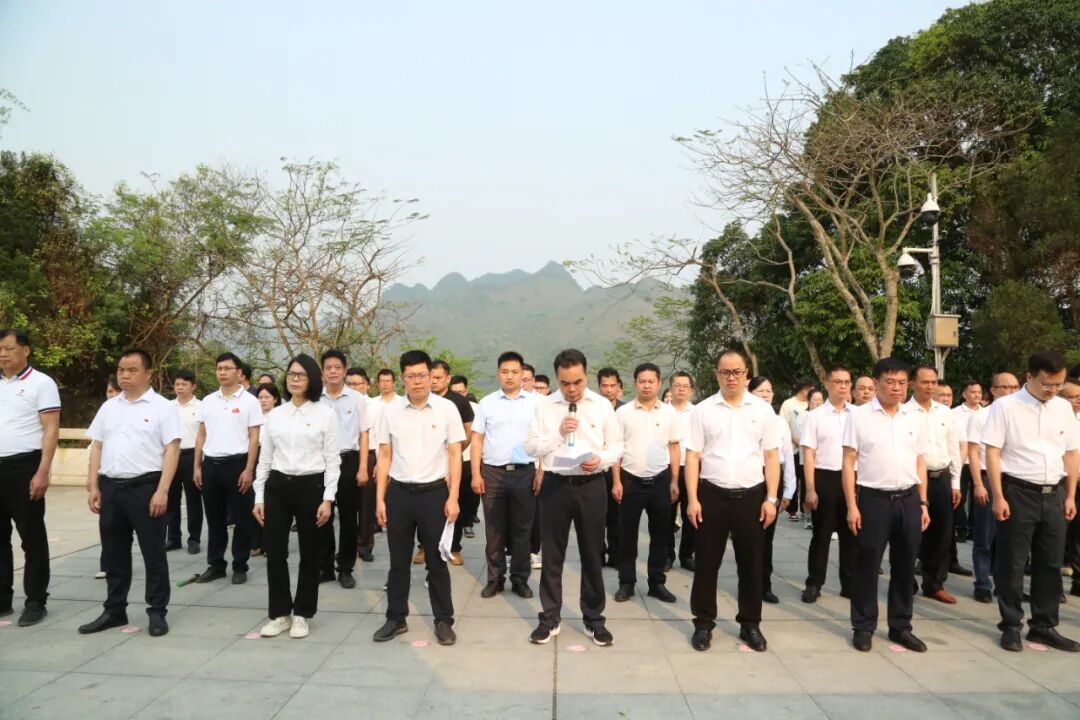 为缅怀革命先烈,弘扬革命精神,凝聚奋进力量,在清明节来临之际,4月2日,凭祥产业园筹委会到凭祥市法卡山烈士陵园开展“铭记革命英雄 赓续红色血脉”清明祭英烈主题党日活动。凭祥产业园临时党委委员、筹委会专职副主任,机关党委书记姚荣军及产业园临时党委、筹委会班子领导,筹委会机关党员、发展对象、入党积极分子、干部职工,园区企业党员代表等90余人参加活动。